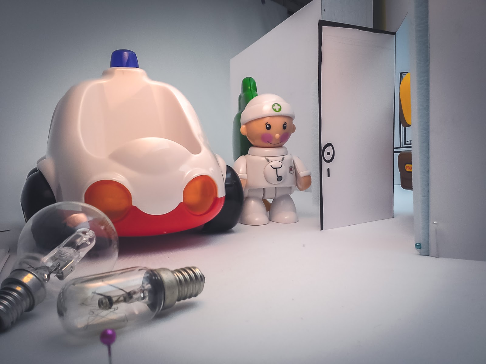 I used combined scene design real toys and paper build decorations. Very similar to Lifetime but this time I changed my lightning setup - I gathered all my lamps and put it right on top of scene and covered with diffuser. So no side light, just top light and a black and white flags to modulate light and as for me it looks very natural.